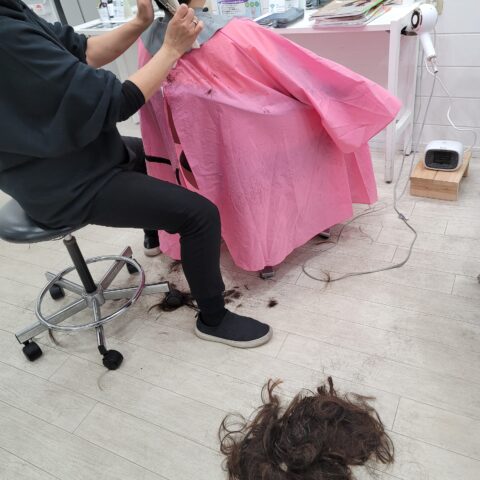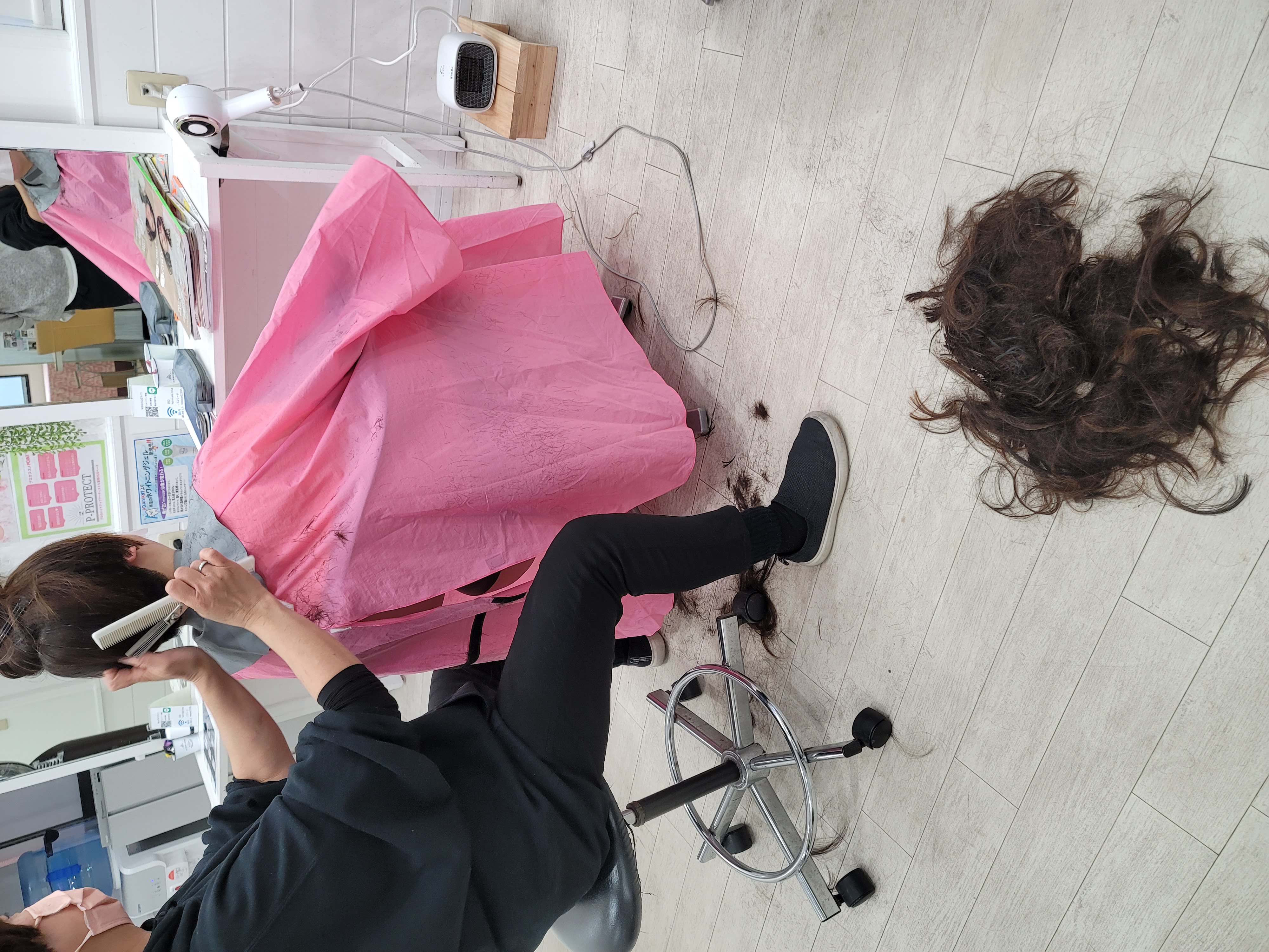 2022.01.19 サロン さ~どうする~!? 変身やっちゃう! 2年ぶりに髪型変えた~い どんげする? 髪の色もどんげする~ じゃあ いくよ~カットするよー こんなに頭の上にのせてたとよねー軽いわ~! いいね!サッパリ インナーカラーはコバルトブルー表面はアッシュ お客様の声・・軽くなって 仕事もバリバリやるわー! よかった~❕ 本日もありがとうございます