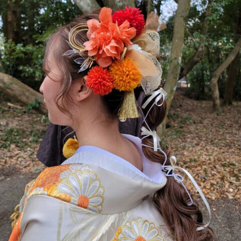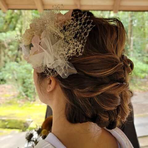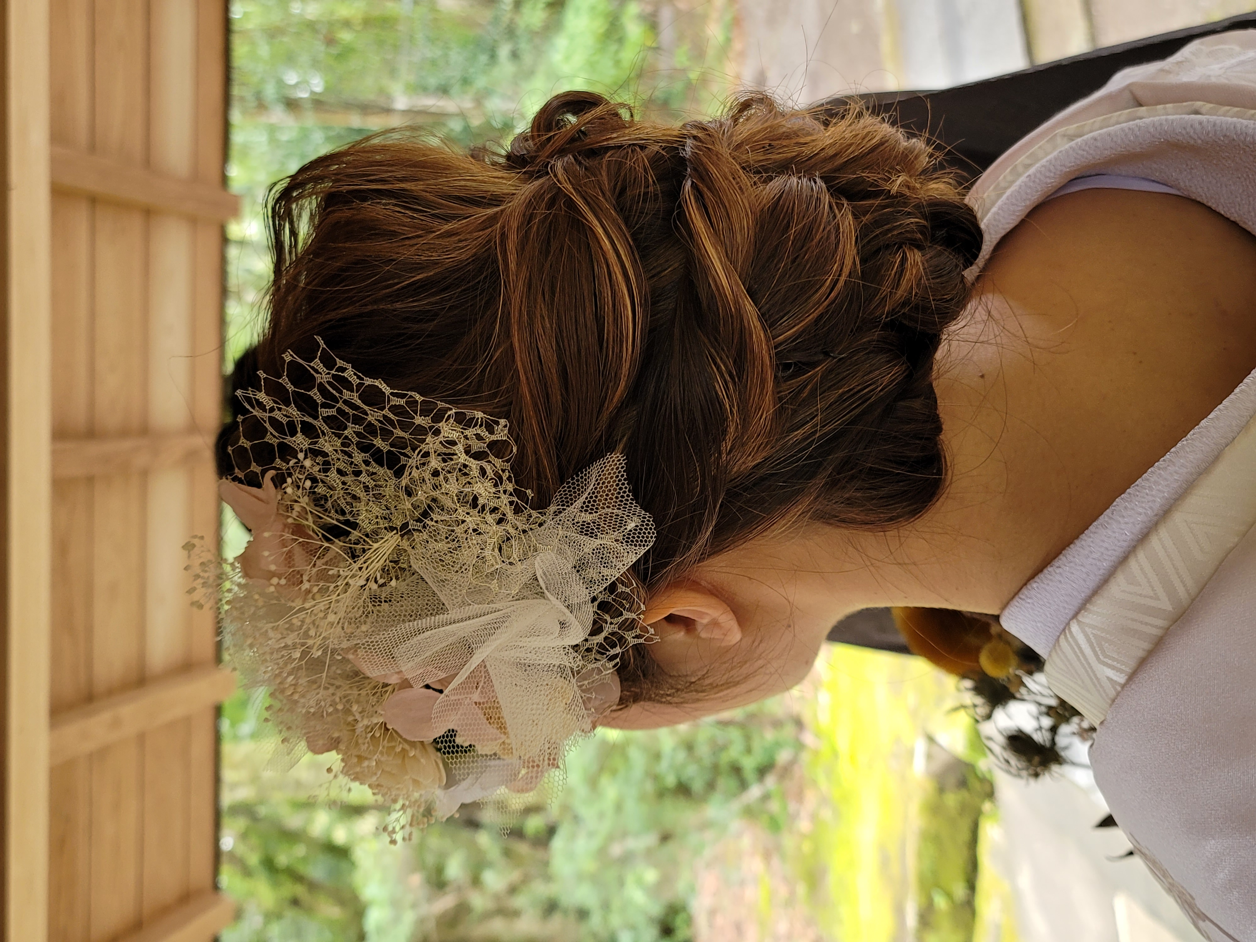 お天気恵まれて・・ご自分で用意されたヘアー飾りです
