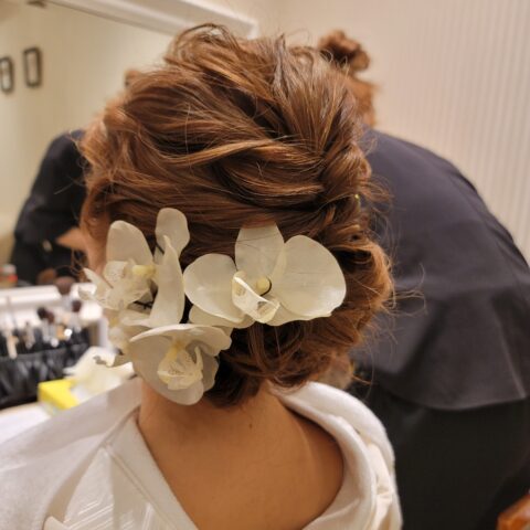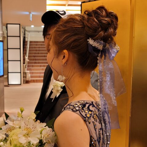 トップシニヨンに リボン