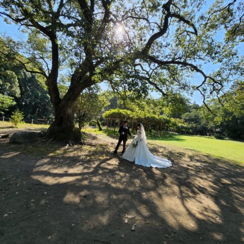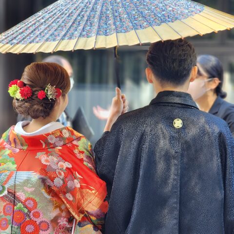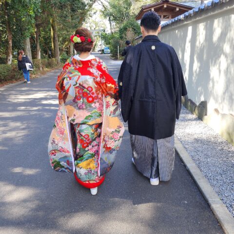 宮崎神宮会館にて 挙式 その後の色打掛にて 入場❣ ドキドキの瞬間です。
