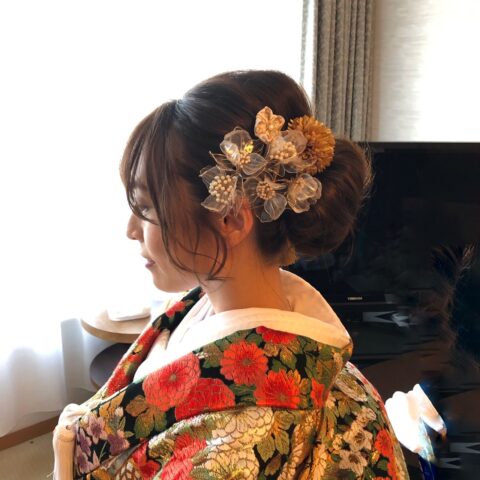 2021.10.27 ブライダル 10月のお嫁さん♪ こんにちは!スタッフの高野です♪ 10月に入ってブライダルのお仕事もたくさん入ってきました☆ コロナで暗いニュースが多い中、おめでたい出来事で幸せをおすそ分けしてもらってます(*^^*) 10月に結婚式をあげたお嫁さん☆ ライトアップされたホテルのプールサイドでは素敵な写真が撮れました♪ 当日の色打掛&ヘアスタイル 当日の披露宴でのウエディングドレス&ヘアスタイル ウエディングドレスは挙式verと披露宴verでガラリと雰囲気を変えています♪ ナイトウエディングも素敵でした☆