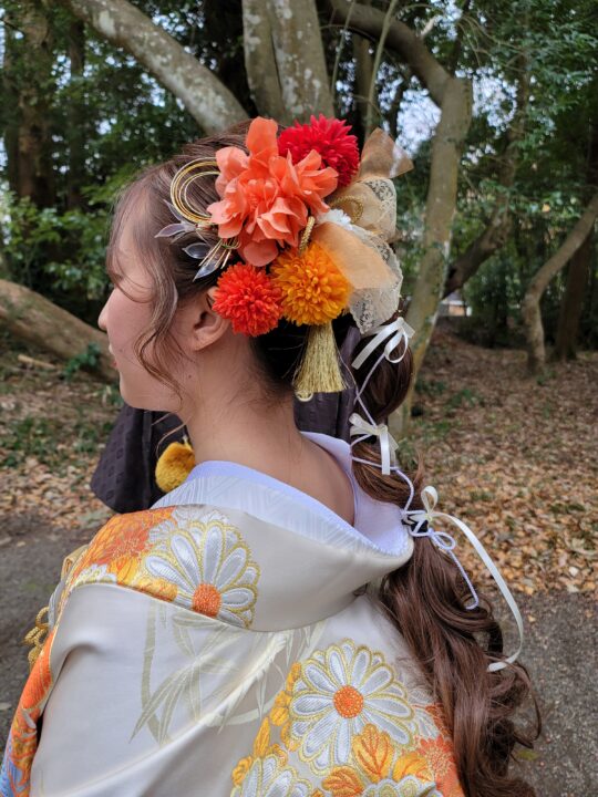 お天気恵まれて・・ご自分で用意されたヘアー飾りです