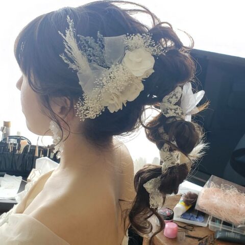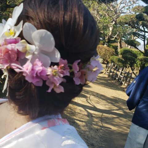 和装は、前撮りで ロケ撮影 日向景修園にて 天気に恵まれました。 シェラトンの挙式では、お天気にめぐまれました。前前日の金曜日までどしゃ降りの雨☔で どうなる? しかし なんと! 晴れました~❣