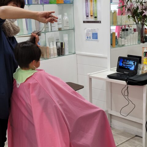 見たいDVDを選んでもらって カットに入ります。 集中して見ている間に カット! カット!