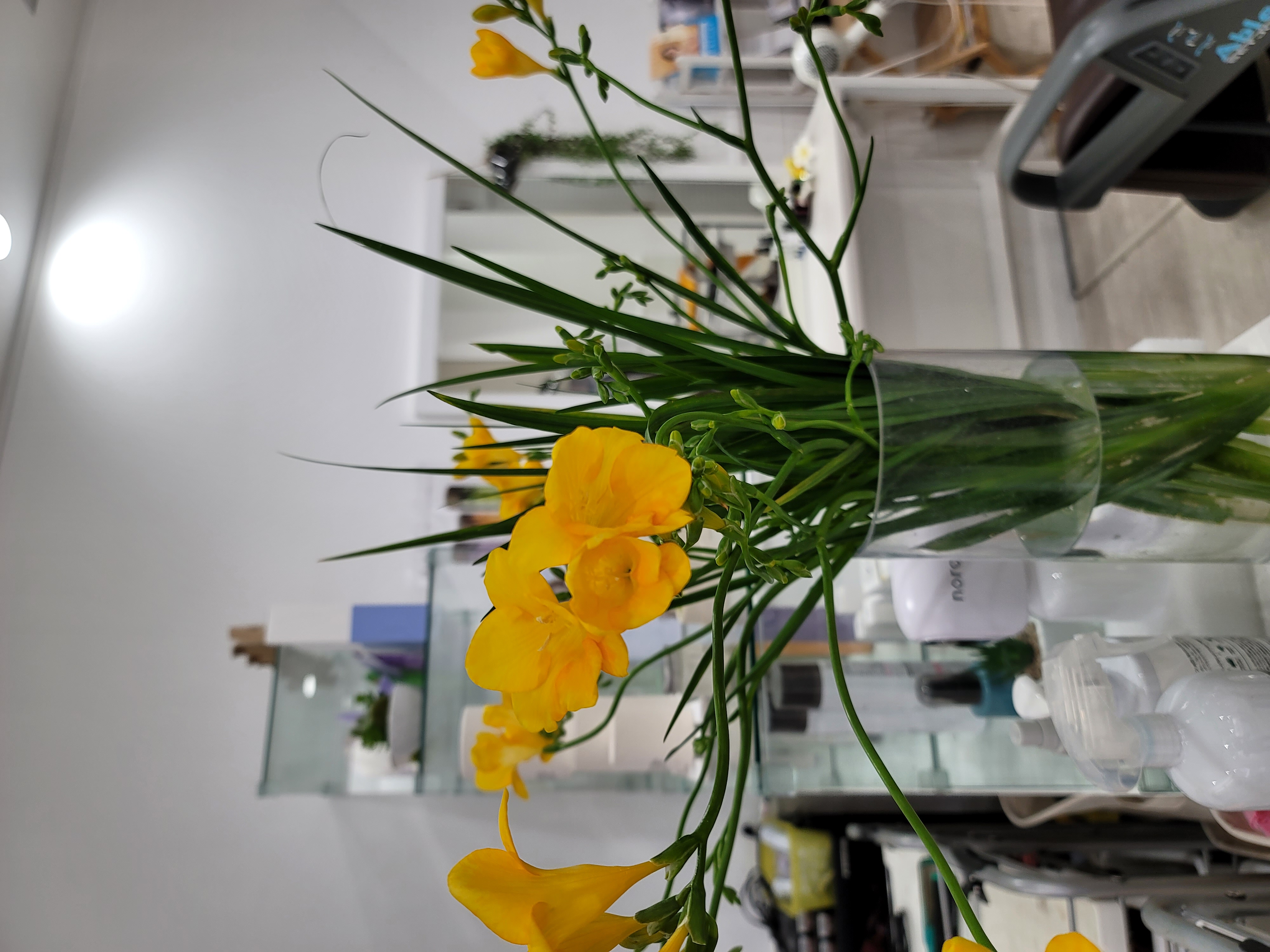 2022.03.10 ニュース 日記 今週のNOVA 今週のお花 藪さんいつもお世話になっております。今週のお花は、フリージアです。黄色い可愛いお花です。 誰かが ネギが入っている・?と ちらっと聞こえたが、 いえいえフリージアの葉なんで(笑)